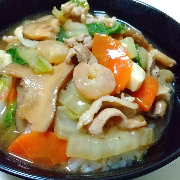 シーフードミックスでとろ〜りあんかけ中華丼。