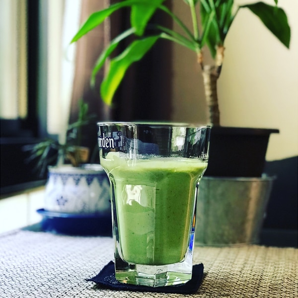 小松菜とパイナップルと糀甘酒のグリーンスムージ。
