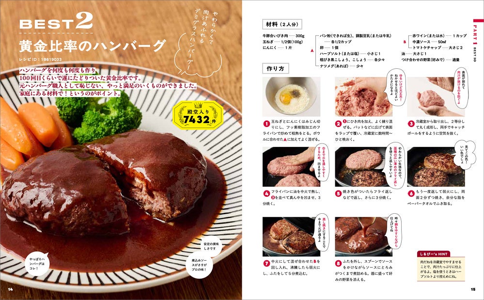 クックパッド、計11万4000件超のつくれぽがついた人気作者のレシピ本『元ハンバーグステーキ職人の特売肉で格上げレシピ』を発売クックパッド株式会社のプレスリリース。