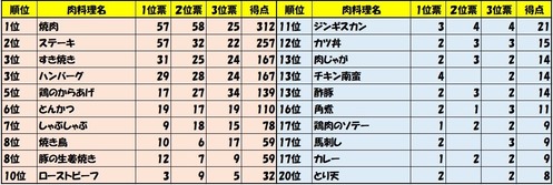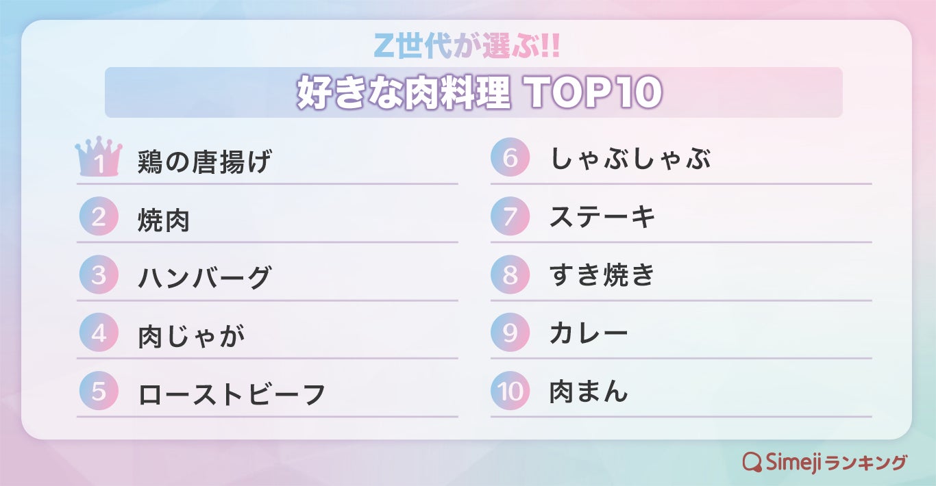 Simejiランキング Z世代が選ぶ!!「好きな肉料理TOP10」バイドゥ株式会社のプレスリリース。