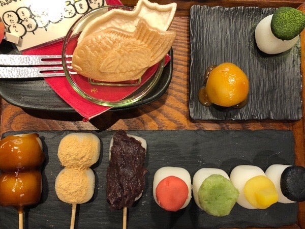 市電西大寺町駅ちかく「田渕商店 岡山店」の「七輪お団子セット」 おにさんぽグルメ。