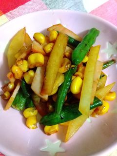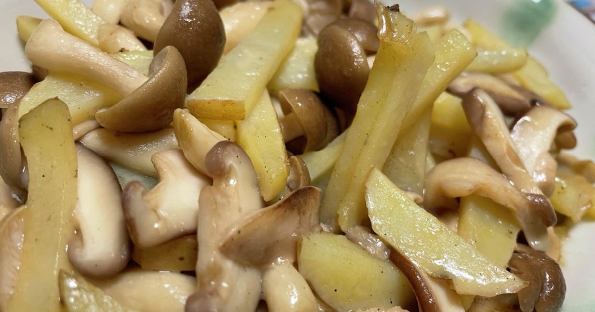 にんにく香る豚こまとじゃがいものバターぽん酢炒め。