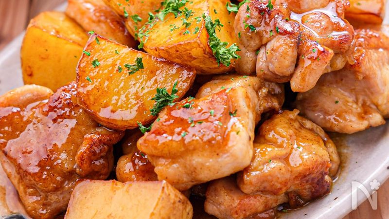 じゃがいもと鶏肉のぽん酢レモンのバター照り焼き。