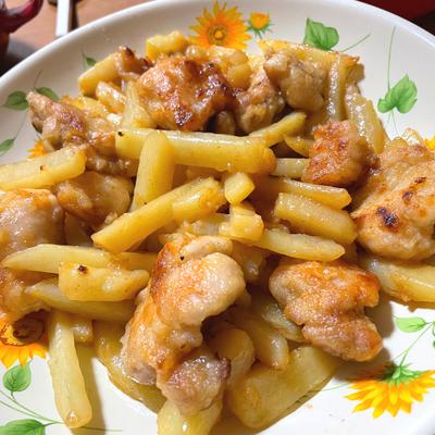 ごはんによく合う! 鶏肉とじゃがいものポン酢マヨ炒め。