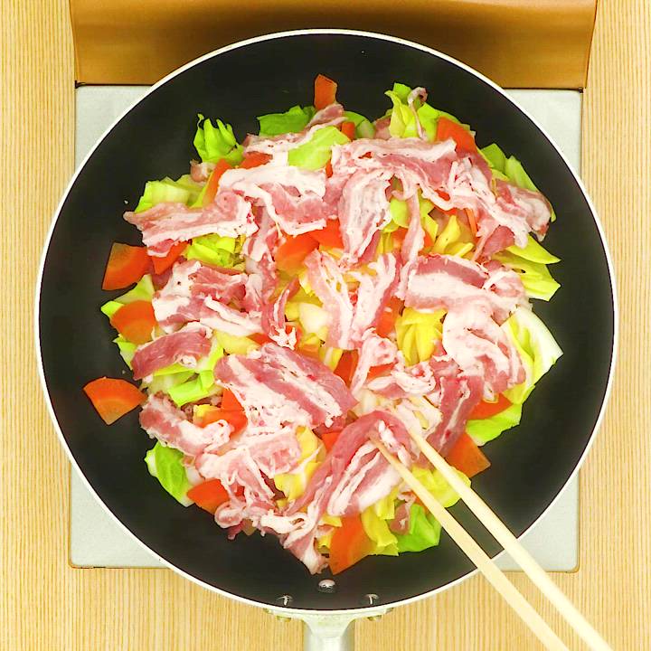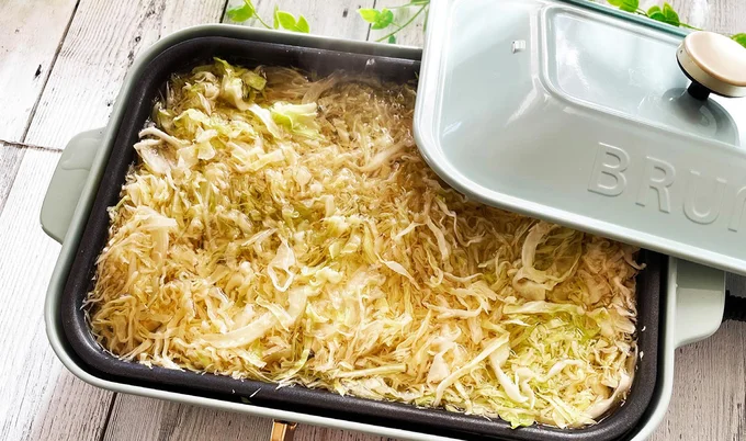 ほったらかしでらくらく!「豚肉とキャベツのフライパン蒸し」バリエフーディストノート。