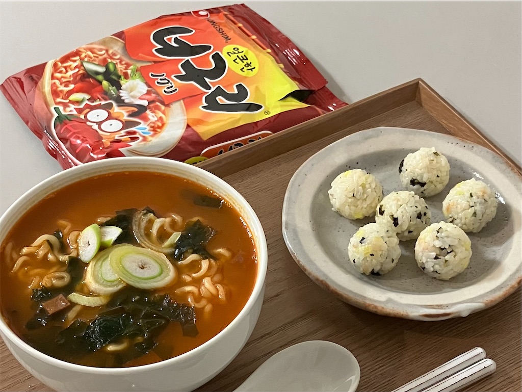 やみつき!チュモッパ風ピリ辛おにぎり。