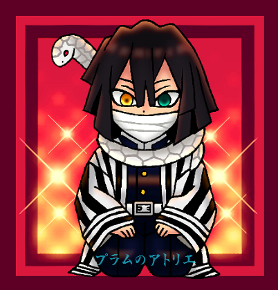 プラムのアトリエ: 鬼滅の刃 第23話 蛇柱 伊黒 小芭内 正座Ver.&白蛇 鏑丸 ミニキャラ ちびキャラ イラスト。