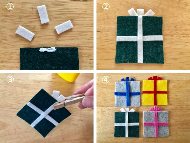 クリスマスオーナメント・簡単に作れるフェルトの「プレゼントボックス」の作り方mocharina*布あそび。