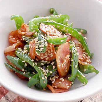 お弁当にも♪ピーマンとベーコンのぴり辛ごま絡め☆わたしのごはん☆Happy Days☆~Happyレシピ☆~毎日美味しい食卓を♪。