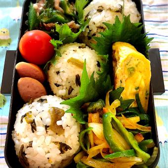 お弁当記録」 今日のお弁当😋🍴🍱🎶 しめじのベーコン巻き あおさのだし巻き玉子 人参、ピーマン、しめじのナムル ミニトマト 梅干し気をつけて *˙︶˙* ノ゙いってらっしゃい♡主婦の日常。