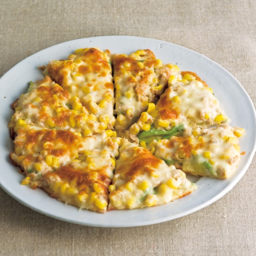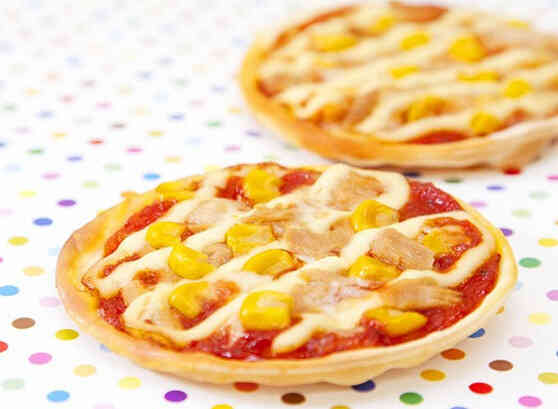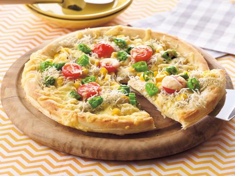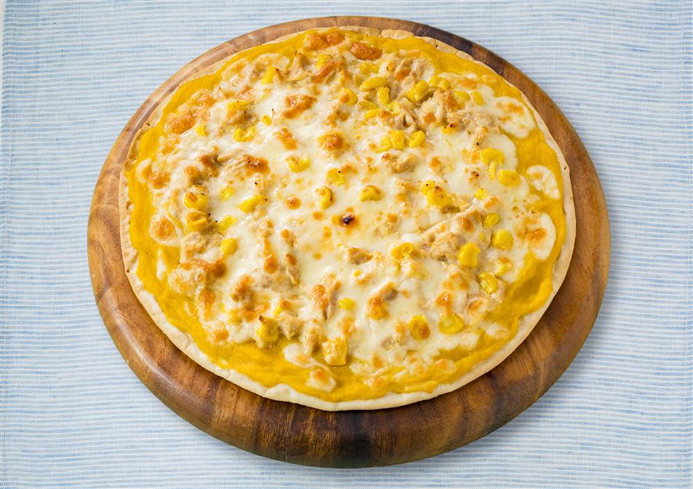ツナとコーンのもりもりピザ岡谷酸素株式会社。
