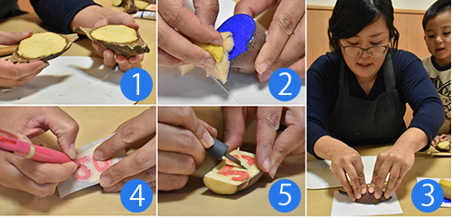 インクの色が変わる芋版をつくってみた!いただきます!ラボ。