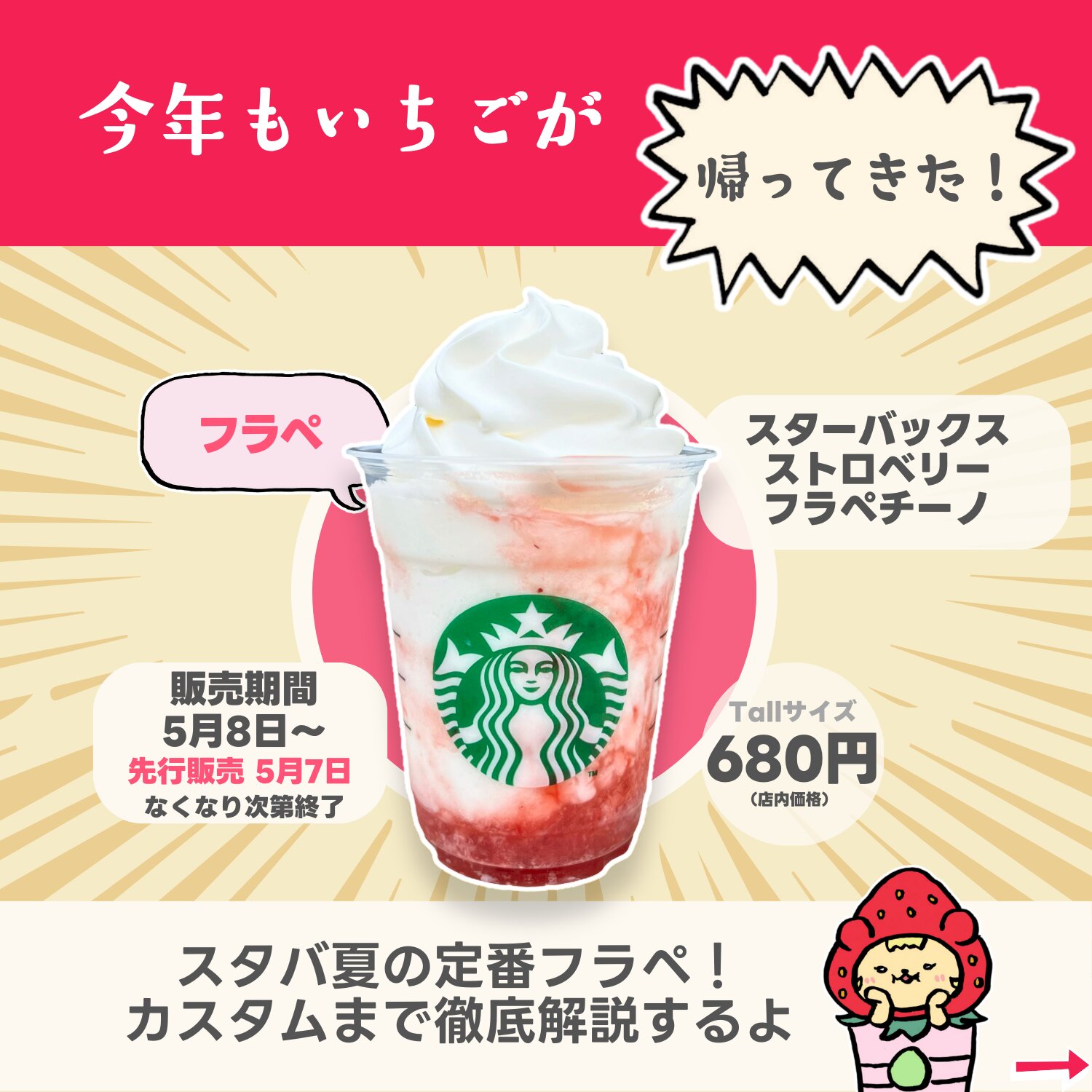 スタバ新作カスタム いちごフラペチーノが帰ってきた!元スタバ店長のおすすめカスタムまで徹底解説! まめ☆毎日スタバカスタム- エキスパート -Yahoo!ニュース。