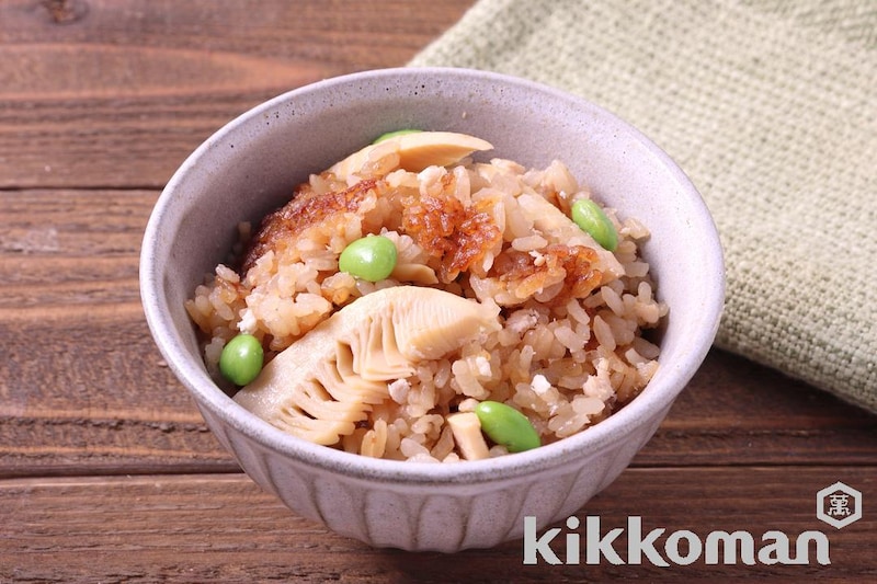 たけのこと鶏ひき肉の炊き込みご飯 山本ゆりさん・旨み広がるだししょうゆ使用。