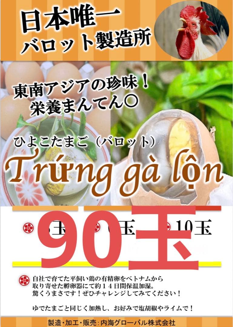 鶏のバロット鶏の有精卵ふ化前10個パック日本産– フィリピン食品・食材の通販 <赤羽物産> フィリピンフーズ。