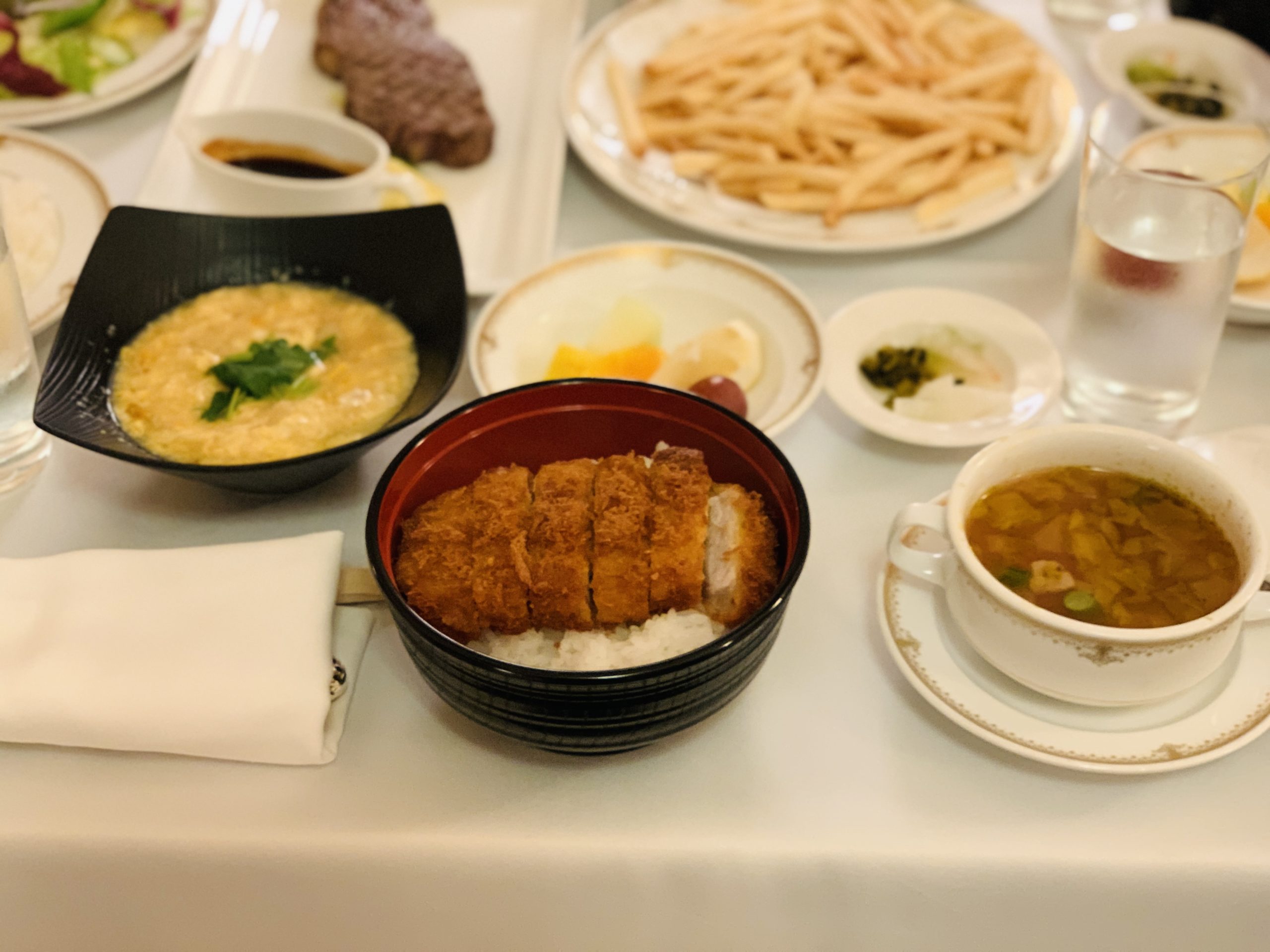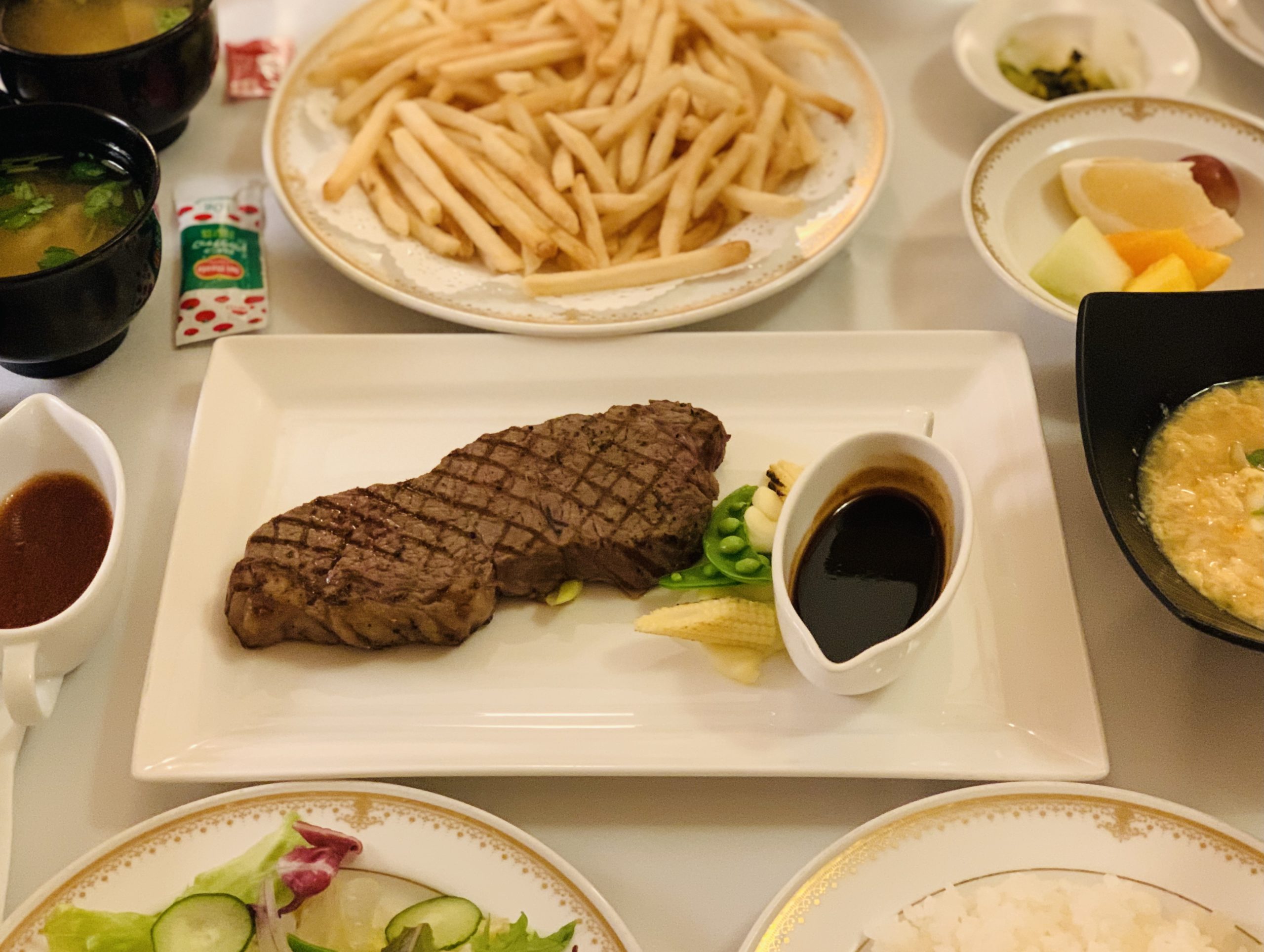ミラコスタ ルームサービスでステーキ丼と海老天丼とおにぎり三種と 我が家お気に入りのフレンチフライポテト~~!≪2019年3月☆旅行記1日目≫。