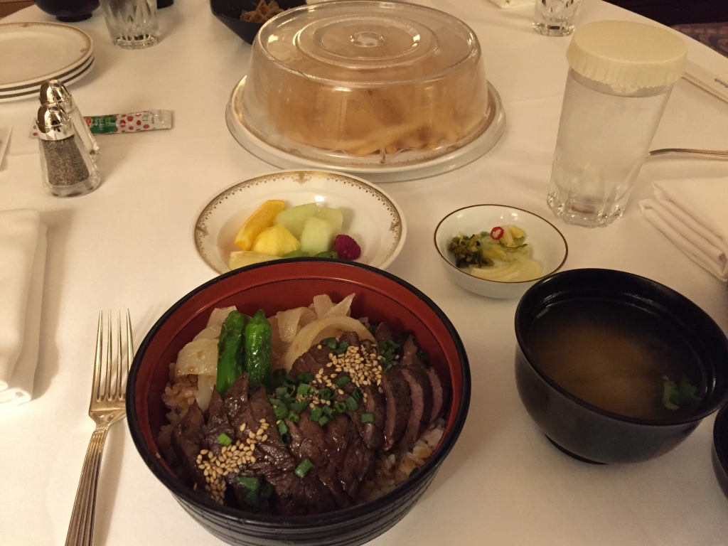 ミラコスタのおすすめルームサービス ステーキ丼とおにぎり三種とフレンチフライポテト≪2017年1月☆TDR旅行記1日目≫。