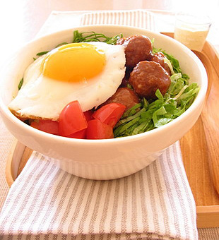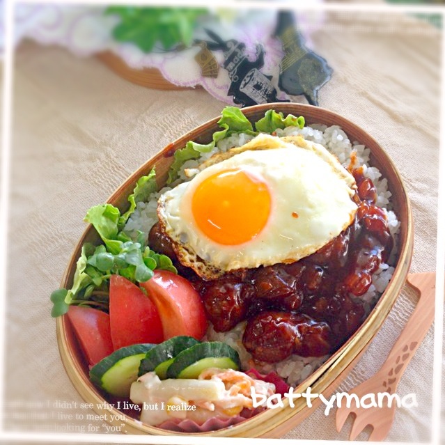 市販のミートボールで簡単8分 ロコモコ丼弁当battymamaの節約しても美味しいお弁当 ばってぃーまま@♪Snapdish スナップディッシュID:jf8yea。