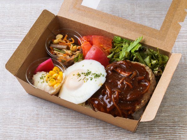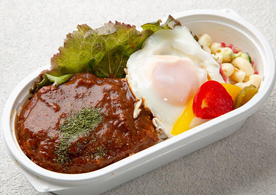 煮込みハンバーグのロコモコ弁当 864円帝塚山 肉料理幸之助 - くるめし弁当。