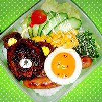 子供が喜ぶ簡単キャラ弁☆ぐでたまのロコモコ弁当♪。