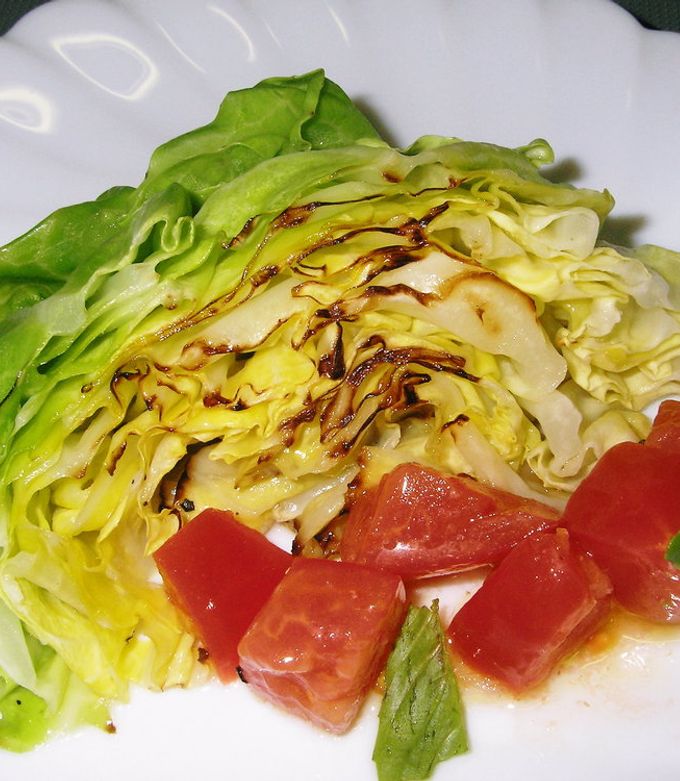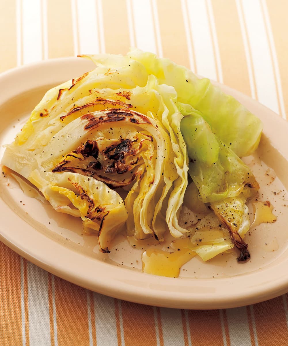 芯つきで焼くだけ!キャベツのオリーブオイル焼き。