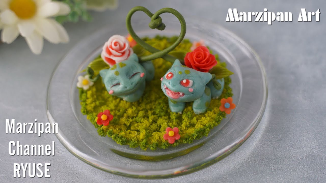 お菓子の素材 マジパン で薔薇の花が咲いたフシギダネ作ってみた お菓子ケーキポケモン マジパン パティシエ Pokemon フシギダネ。
