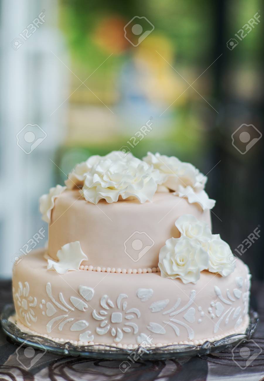 花で大きなマジパン ウェディング ケーキの写真素材・画像素材 Image 42422450。
