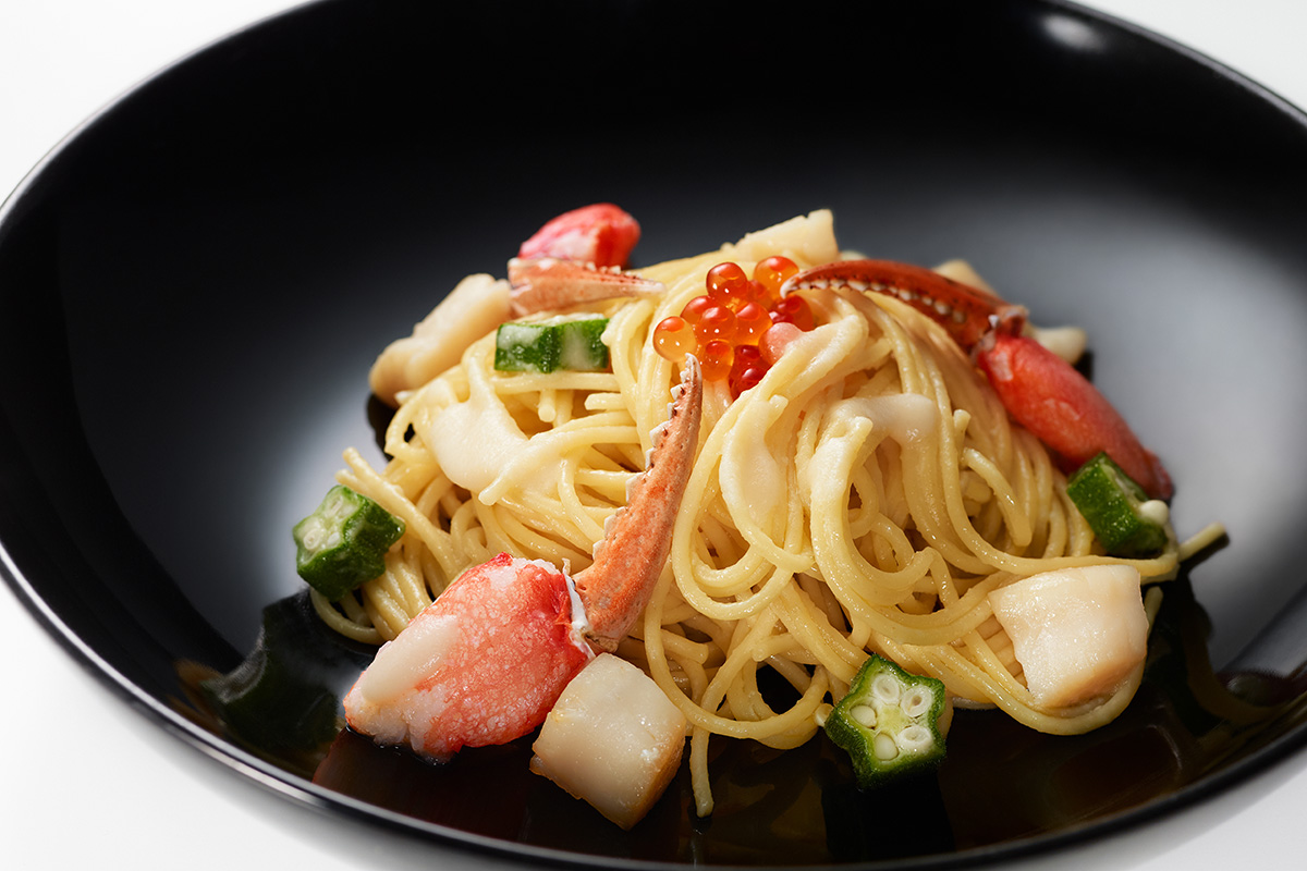 1本爪とバーニャカウダソースのパスタ – 幻の蟹 まるずわいがに専門店かに物語。