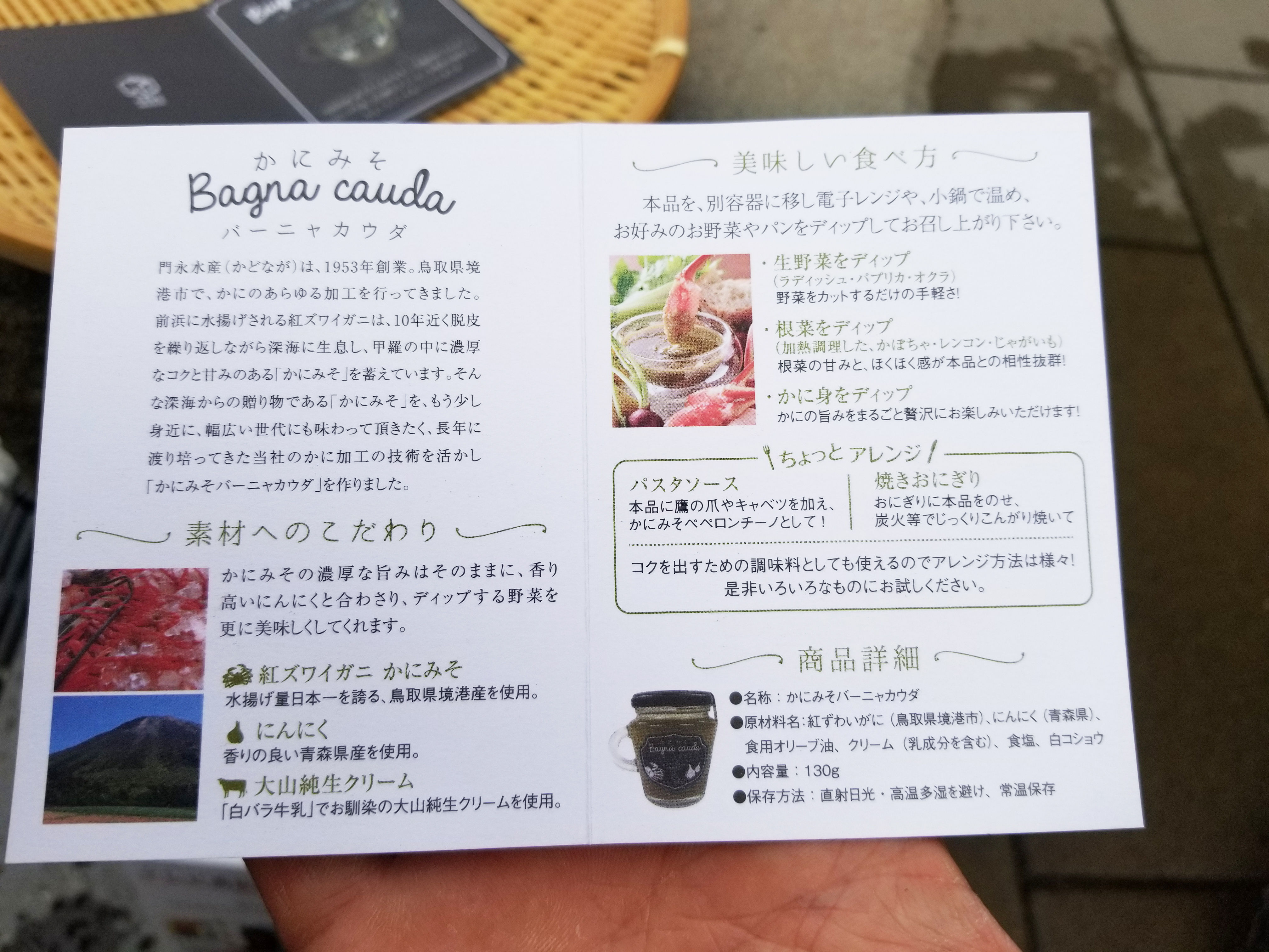 蟹取県境蟹港 かにみそバーニャカウダ〜お土産鉄板商品です♪〜 : 水木しげるロード 妖怪神社スタッフのブログ。