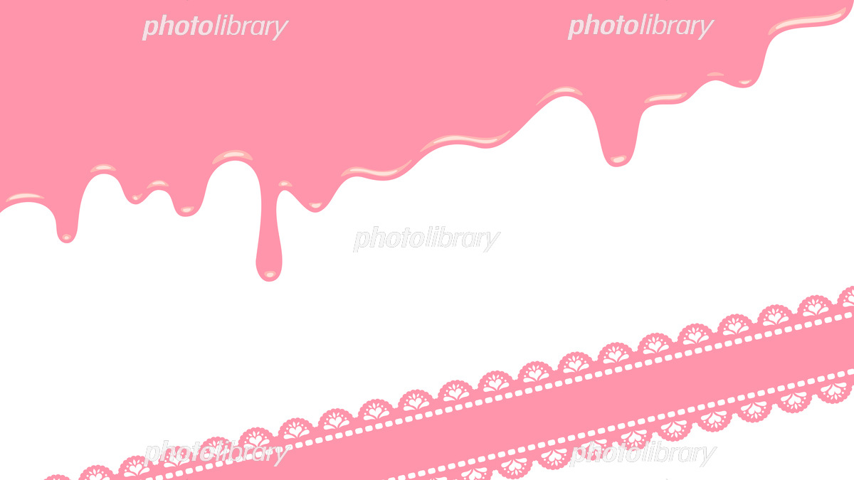 画面の端に斜めに溶けて垂れるピンク色の苺味チョコレート背景とレースのリボンのセット イラスト素材6594631- フォトライブラリ。