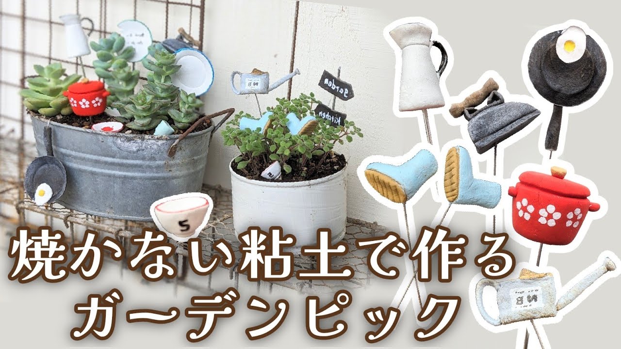 小人サイズの生活雑貨 焼かない粘土 のガーデンピック🌱。