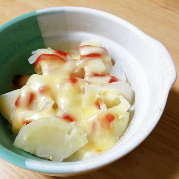電子レンジ☆じゃがいも玉ねぎのケチャップチーズ蒸し。