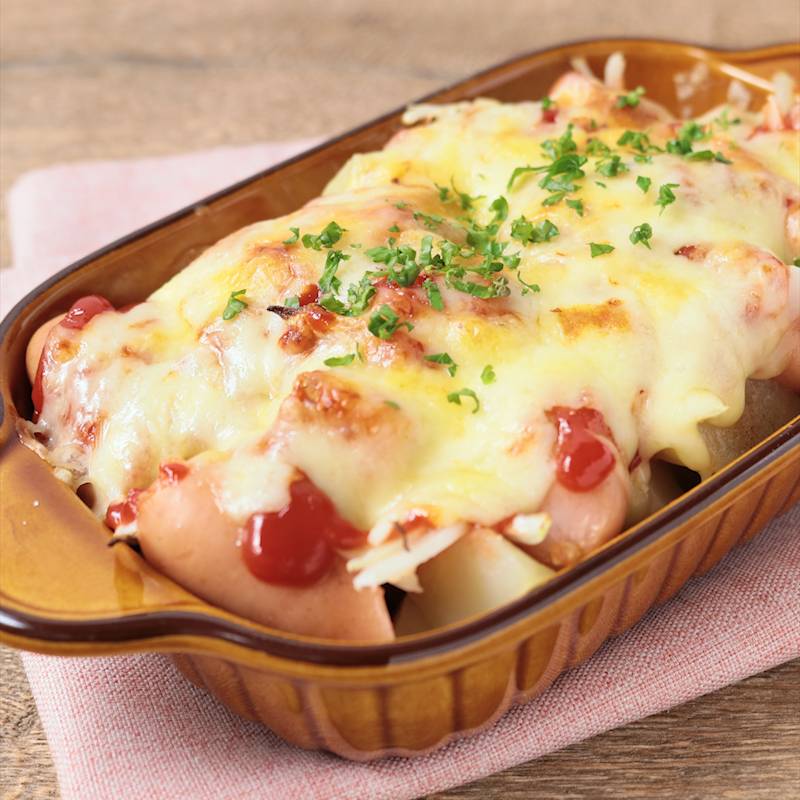 レンジで時短!じゃがいもとウインナーのチーズ焼き。