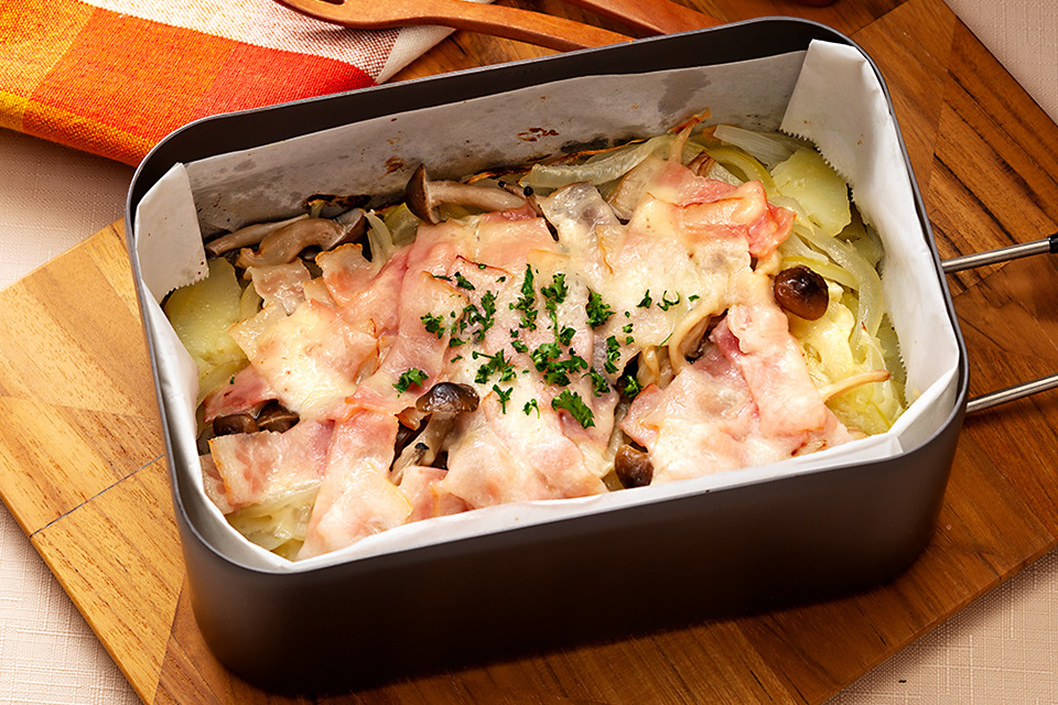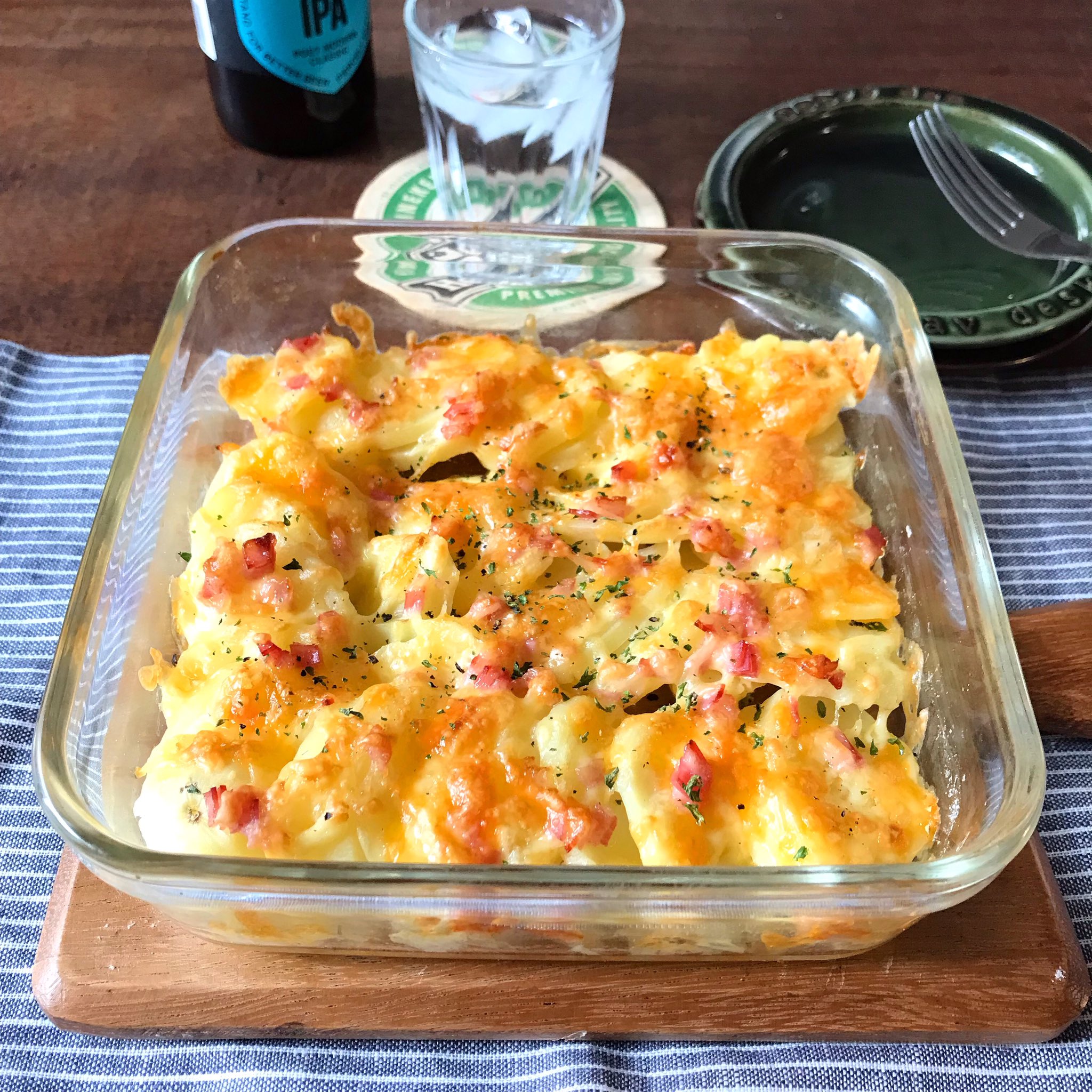 簡単で美味いポテトとベーコンのオニオンチーズ焼きのレシピウェブル。