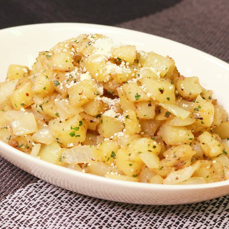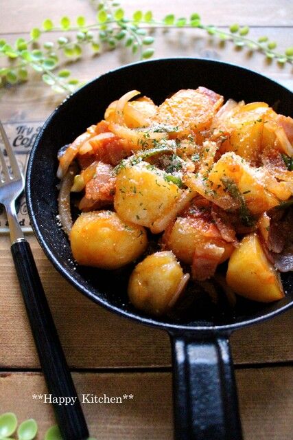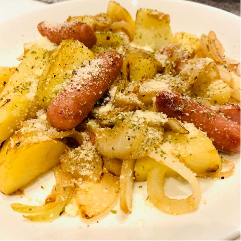 玉ねぎの甘さ引き立つ! じゃがいもの粉チーズ炒め。