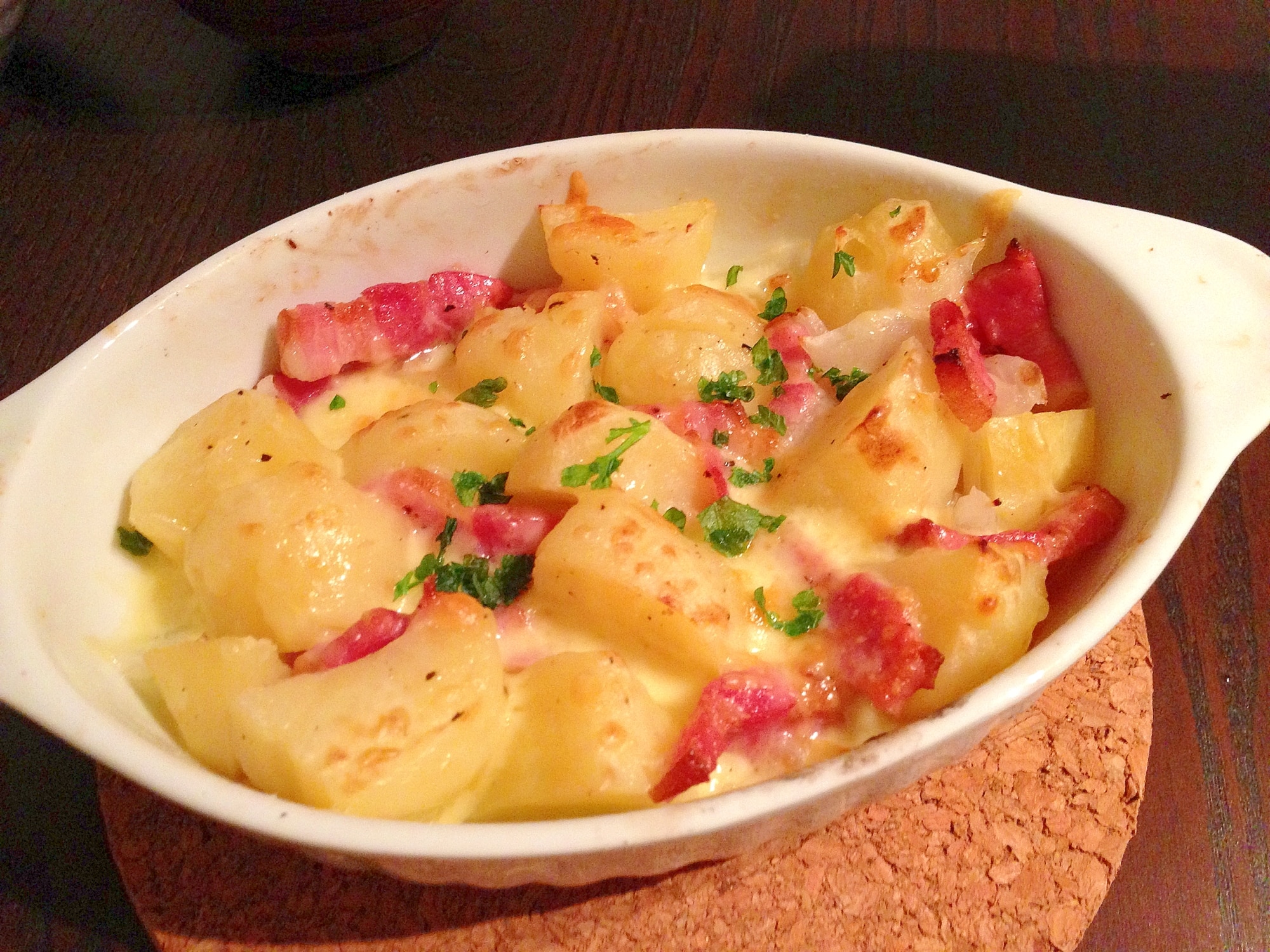 レンジで時短!じゃがいもとベーコンのチーズ焼き。