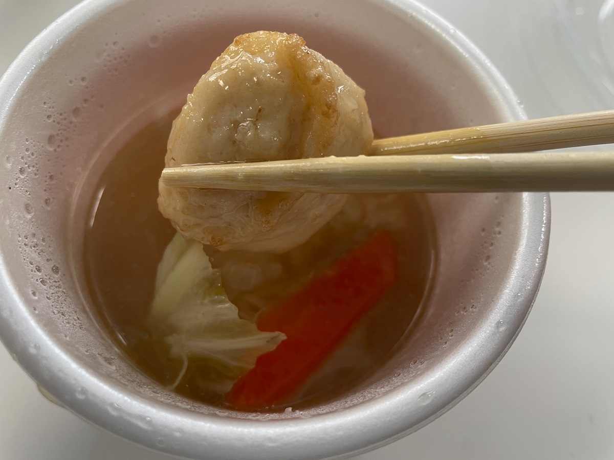 ほっともっと「ぽかぽかうまい ∫∫∫ ◥·◤ 特製豚汁 鶏団子と野菜の旨塩スープ ミニうどん たっぷりわかめ 22 11 07。