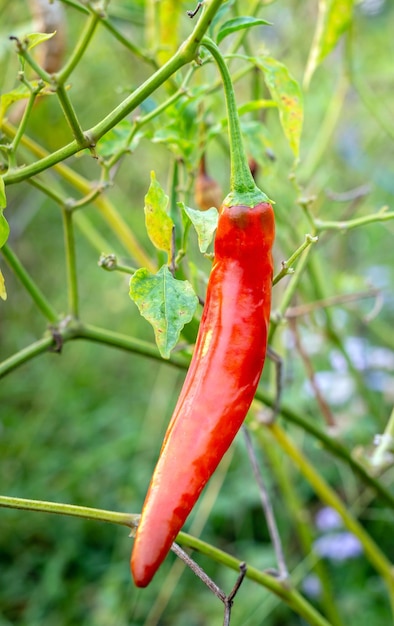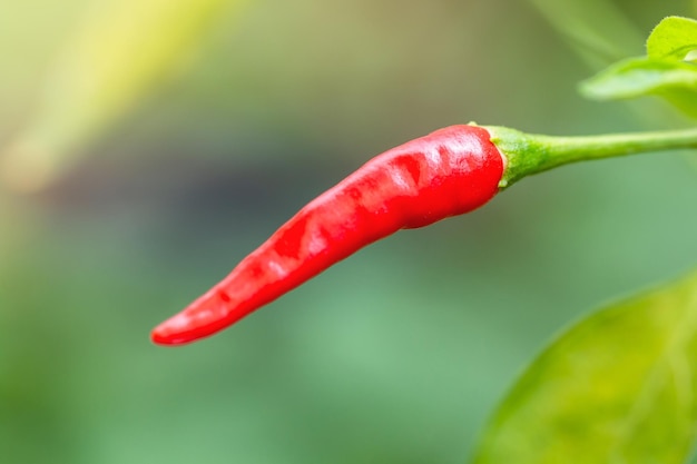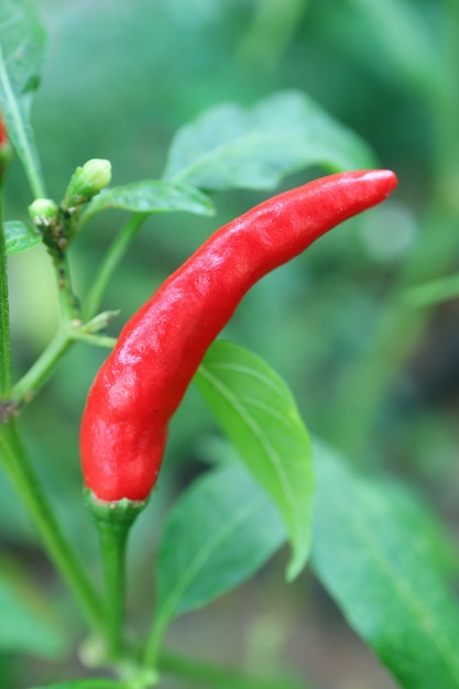 低木で育つ赤鳥の目唐辛子またはタイの唐辛子Premium写真。