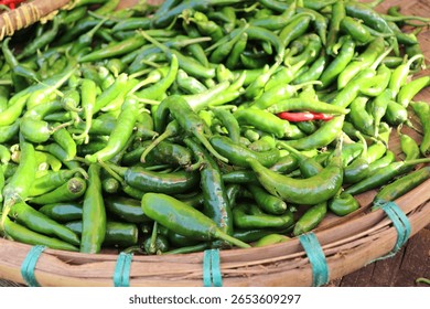 自然のオーガニック背景に、新鮮でスパイシーな赤と緑の鳥の目の唐辛子 cilipadi を鮮やかにミックスし、料理や食品関連のテーマに最適です。写真素材2652710545Shutterstock。