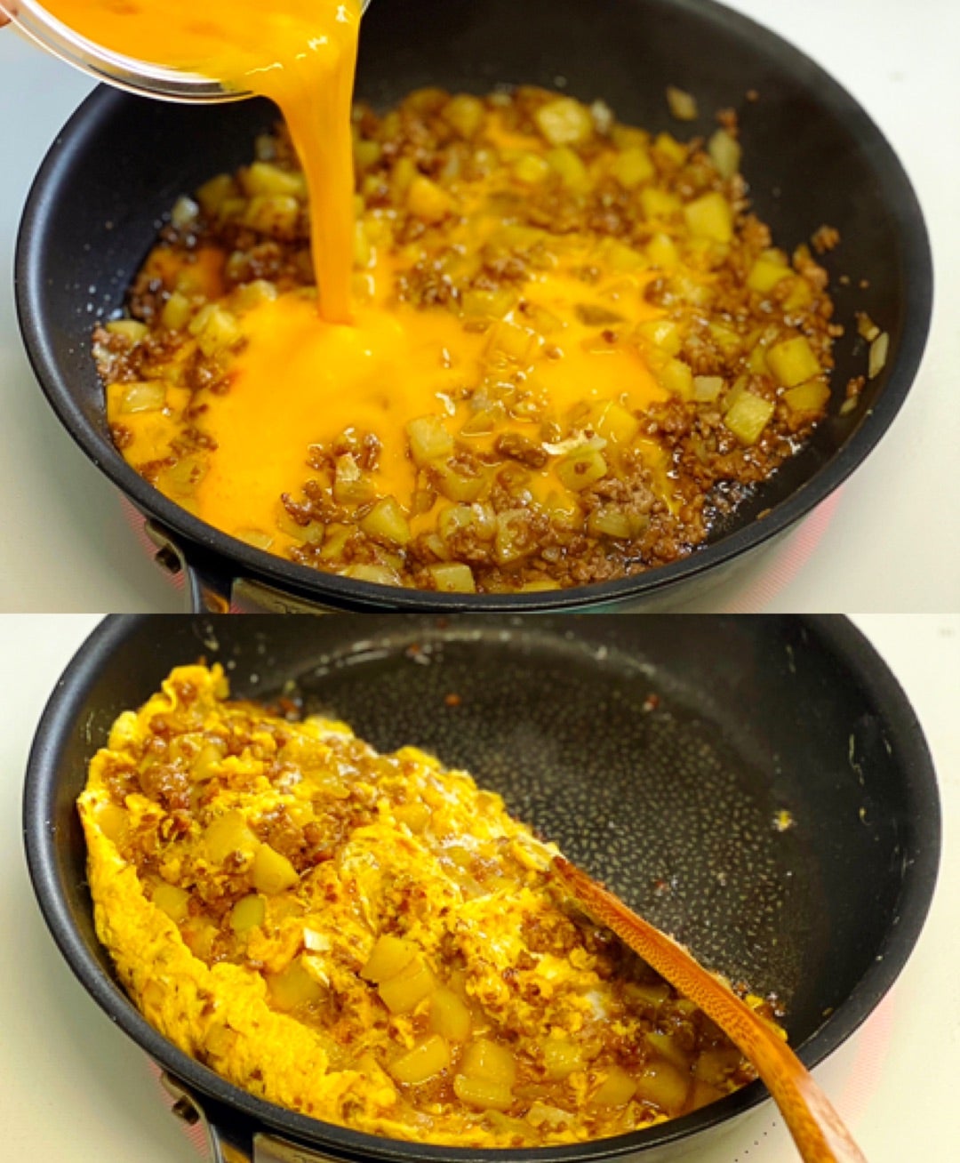 ♡包まない♡ひき肉とじゃがいものオムレツ♡簡単レシピ 時短 節約 卵Mizukiオフィシャルブログ 「♡奇跡のキッチン♡」。