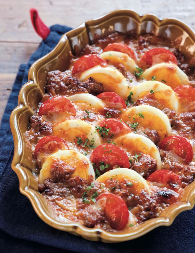 じゃが芋とひき肉のオムレツ奥薗壽子のなべかまぺえじ。