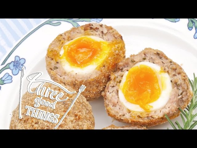切ったらとろける、ごちそうスコッチエッグ 卵×豚ひき肉×オレガノ - Three Good Things。