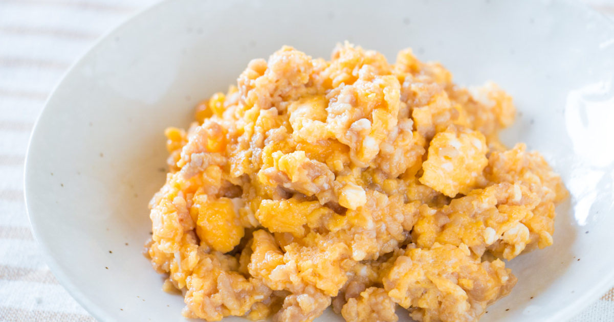 鶏ひき肉入りスクランブルエッグ 低脂肪・タンパク質の多い料理。