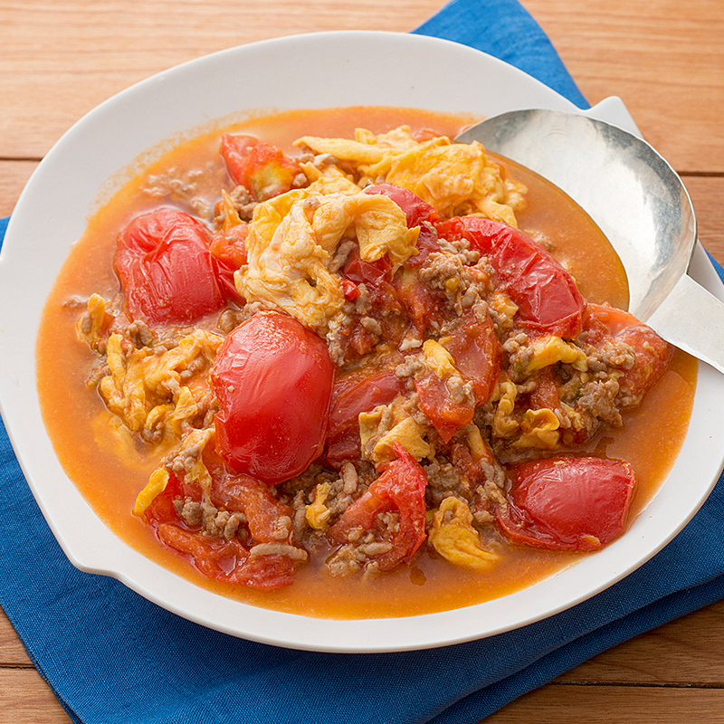 トマトと卵、ひき肉のオイスターソース炒めヤオコーレシピ by Cooking Support。