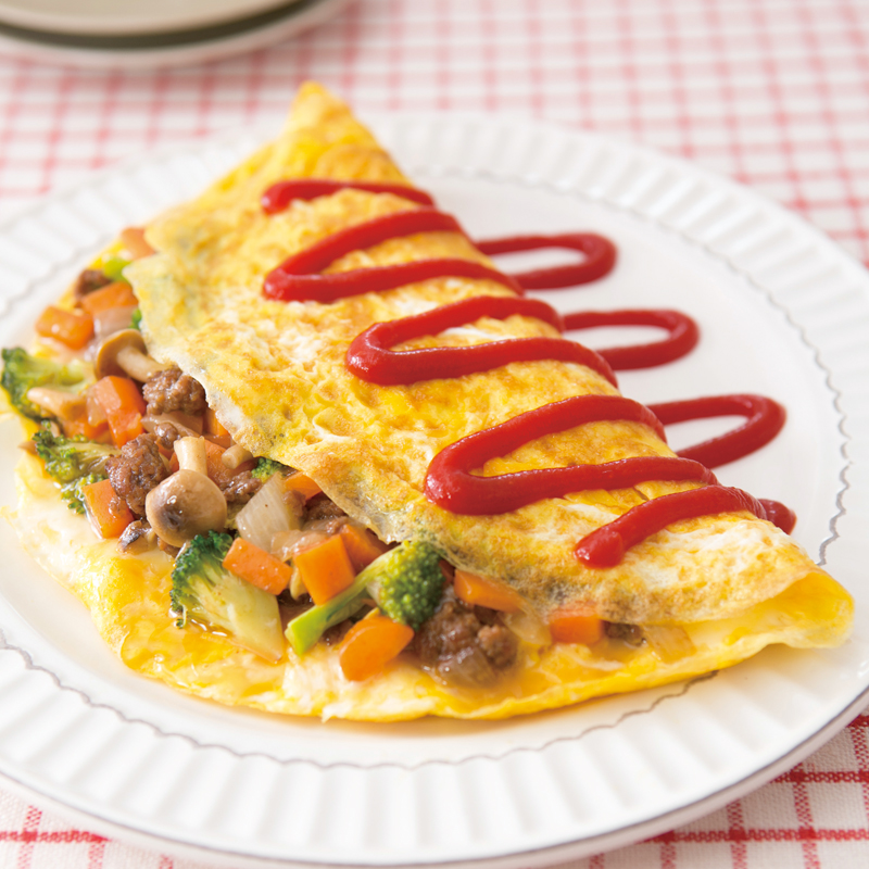 鶏ひき肉のオムレツわくわくレシピ植物のチカラ 日清オイリオ。