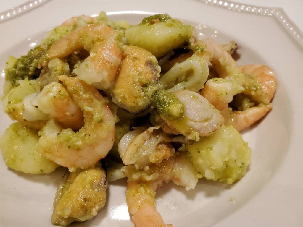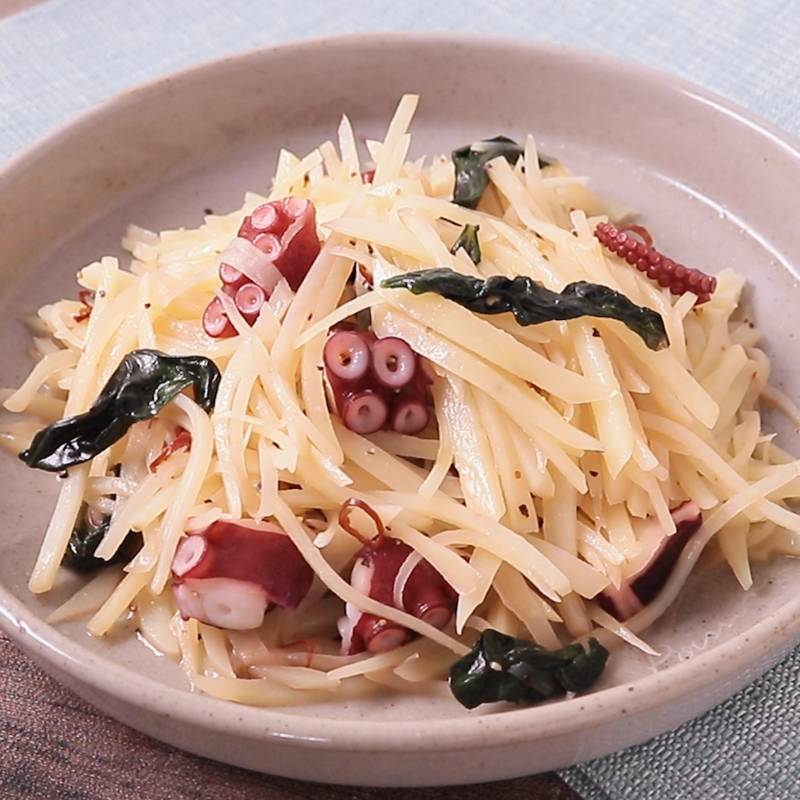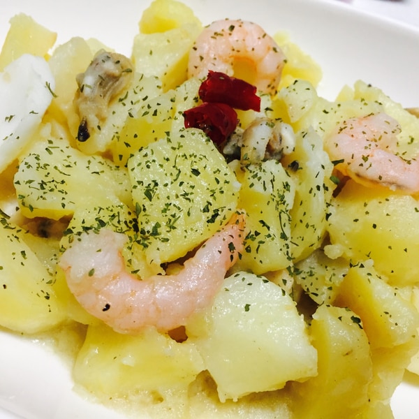 超簡単♪じゃがいもと魚介のシンプルオイルパスタ。