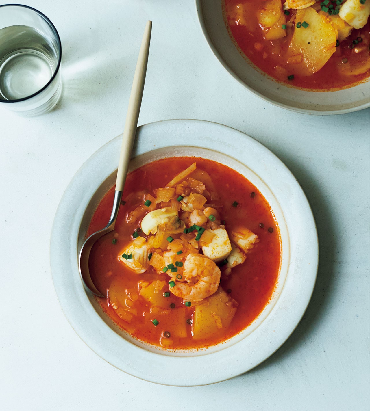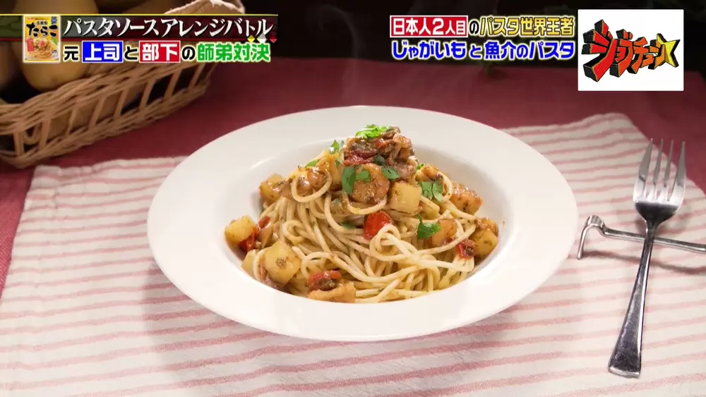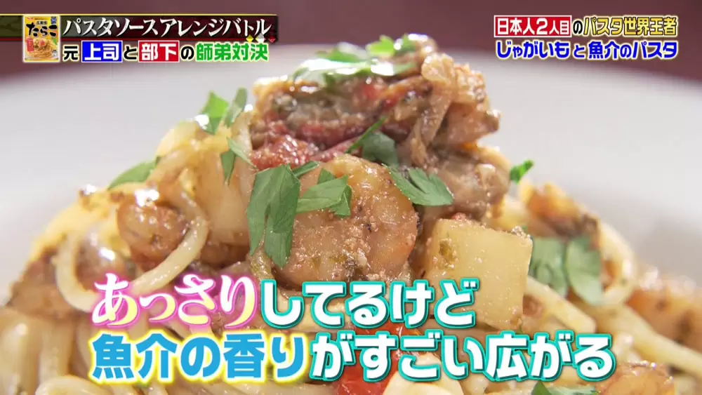 優勝レシピ パスタ世界一シェフ伝授「じゃがいもと魚介の郷土料理風パスタ」の作り方TBSテレビ。