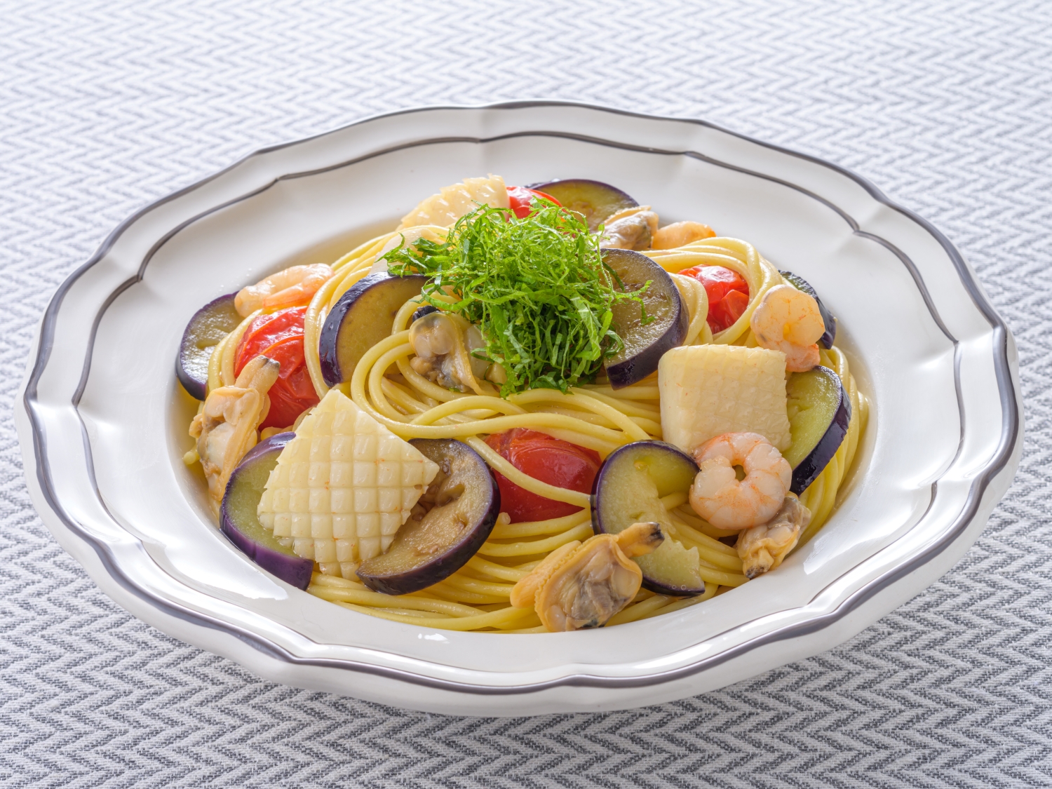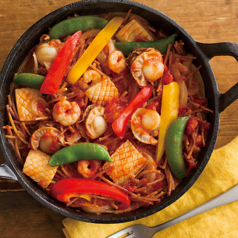 夏野菜とシーフードのペペロンチーノ創健レシピ株式会社創健社-自然食品の企画・製造・卸売。
