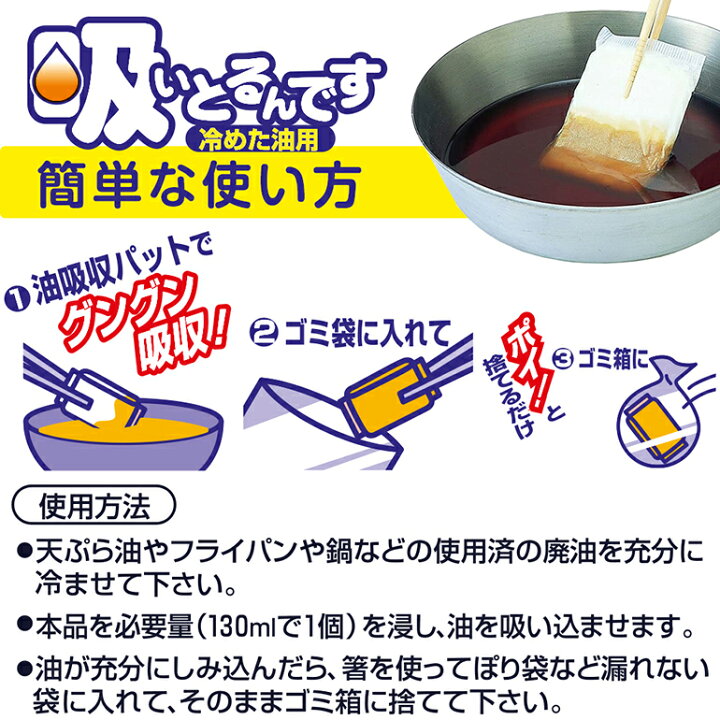 天ぷら油の処理に 油吸収パッド 油を吸わせて捨てるだけ 便利 120ml用 1パック 12個入 協和紙工 - アスクル。
