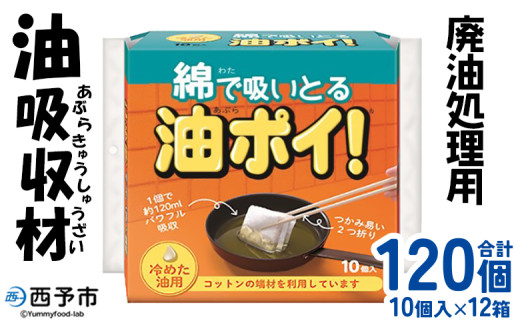 廃油処理用 油吸収材「油ぽい」120個 10個入り×12袋 >油処理剤 キッチン用品 吸油量 120ml 簡単 パワフル 吸収 使用済み油 揚げ物天ぷら油 綿端材 再利用 地球環境にやさしい エコ コットン・ラボ 愛媛県 西予市 常温 『2か月以内に順次出荷予定』愛媛県西予市。